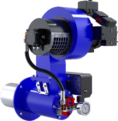 Os queimadores duobloco SANTEC são fornecidos com válvulas completas para gás, óleo e sistemas dual.